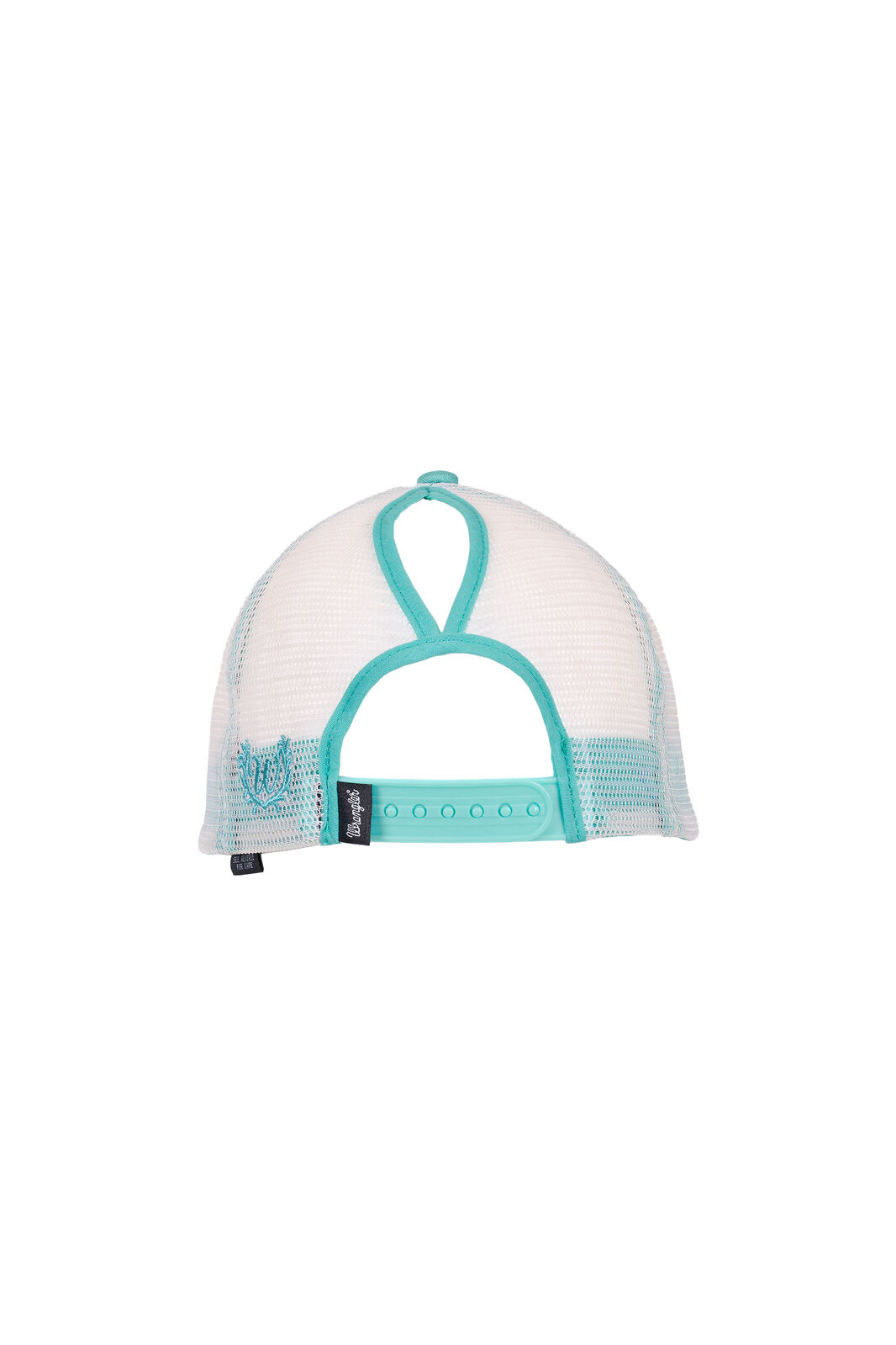 The Wrangler Stevie High Profile Ponytail Trucker Cap in aqua combines classic Western style with practical everyday comfort. Featuring a striking Aztec printed crown and bold front embroidery with the Wrangler logo and “Spirit of the West,” this cap delivers a distinctive look that stands out whether you're outdoors, at events, or enjoying casual wear.