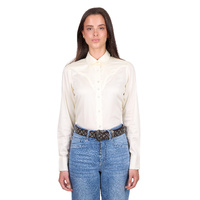 The Wrangler Women’s Bridget Western Long Sleeve Shirt in cream delivers a perfect balance of classic Western styling and modern comfort. Crafted from a premium 97% cotton and 3% elastane sateen blend, this shirt offers a soft, smooth feel with just the right amount of stretch for ease of movement. Whether you're competing or styling a casual everyday look, it provides a flattering fit that moves with you.